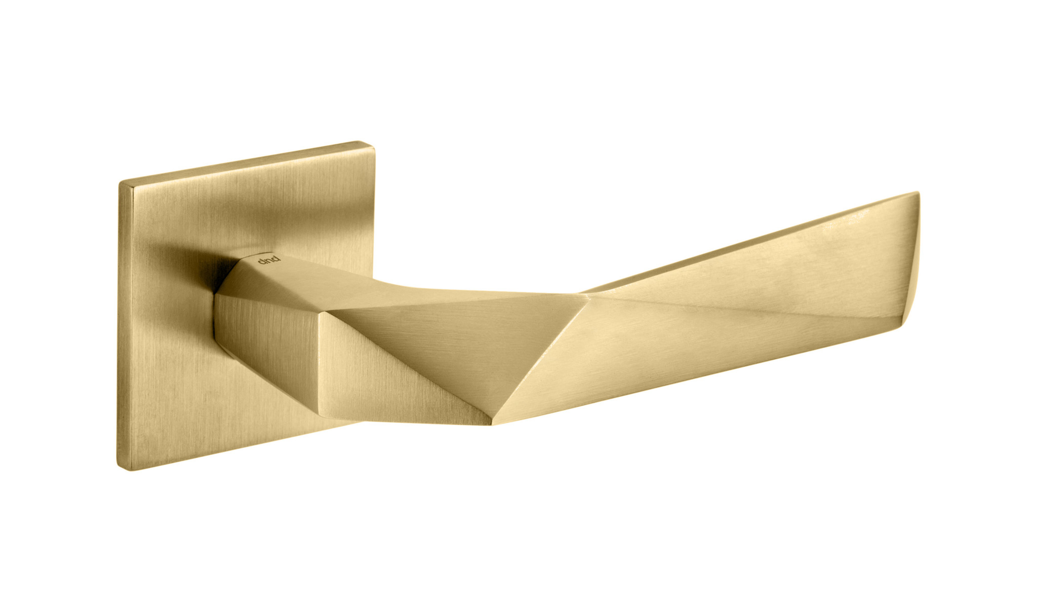Special door handles from DnD in matt gold PVD designed by the Italian designer Mauro Ronchi .
