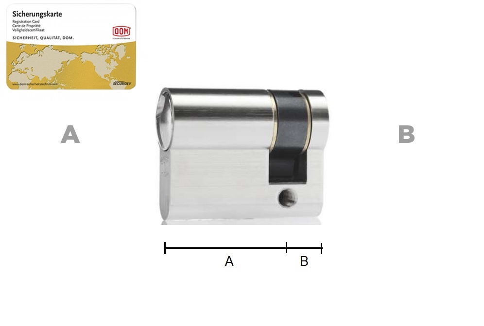 The cylinders are available in different lengths. By default, the cylinder starts at 30 / 10mm and furthermore it can be extended by 5mm each time on the outside (A).