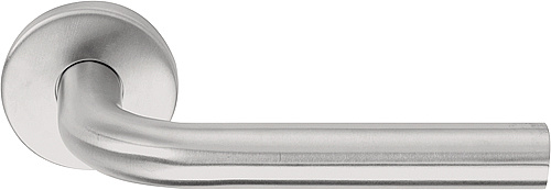 These stainless steel door handles are fitted with sprung round rosettes which comply with class 3 EN1906. The door handles are also available in other versions, such as polished stainless steel.
