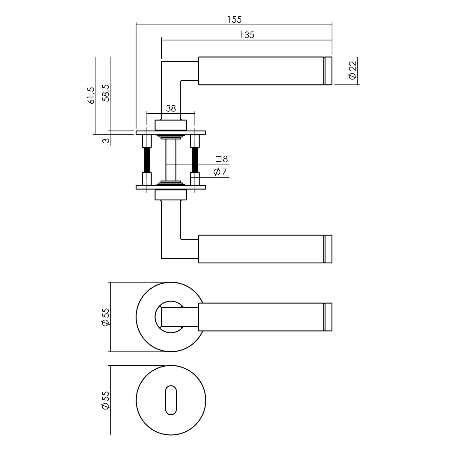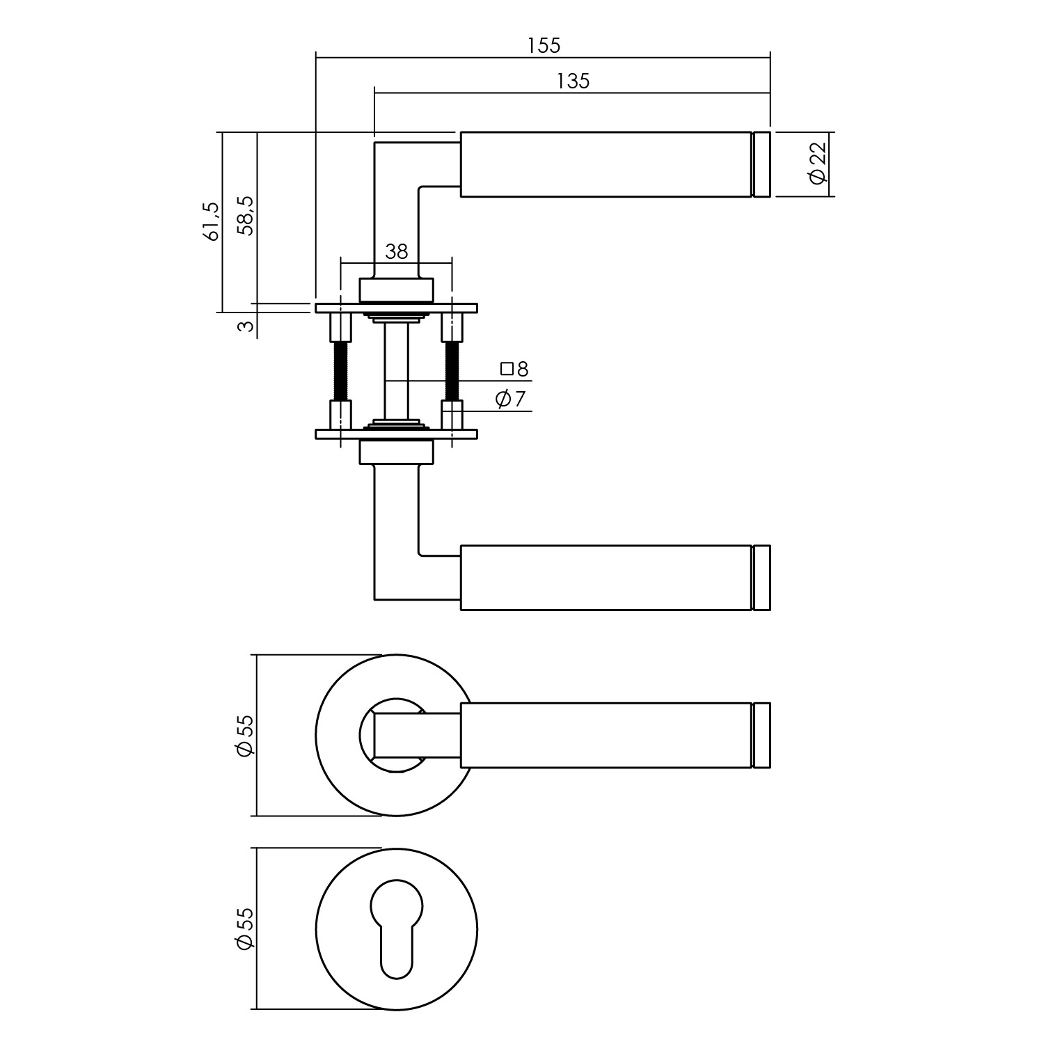 In addition, this door handle is supplied per pair, including 8x8mm pin and rosettes with keyhole.