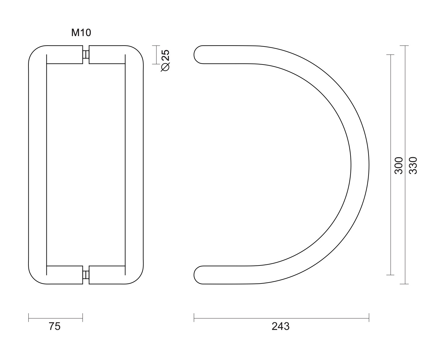 The C-shaped stainless steel door handle is supplied per piece including mounting material for blind mounting. The advantage of a blind mounting is that you do not see any mounting on the other side of the door.