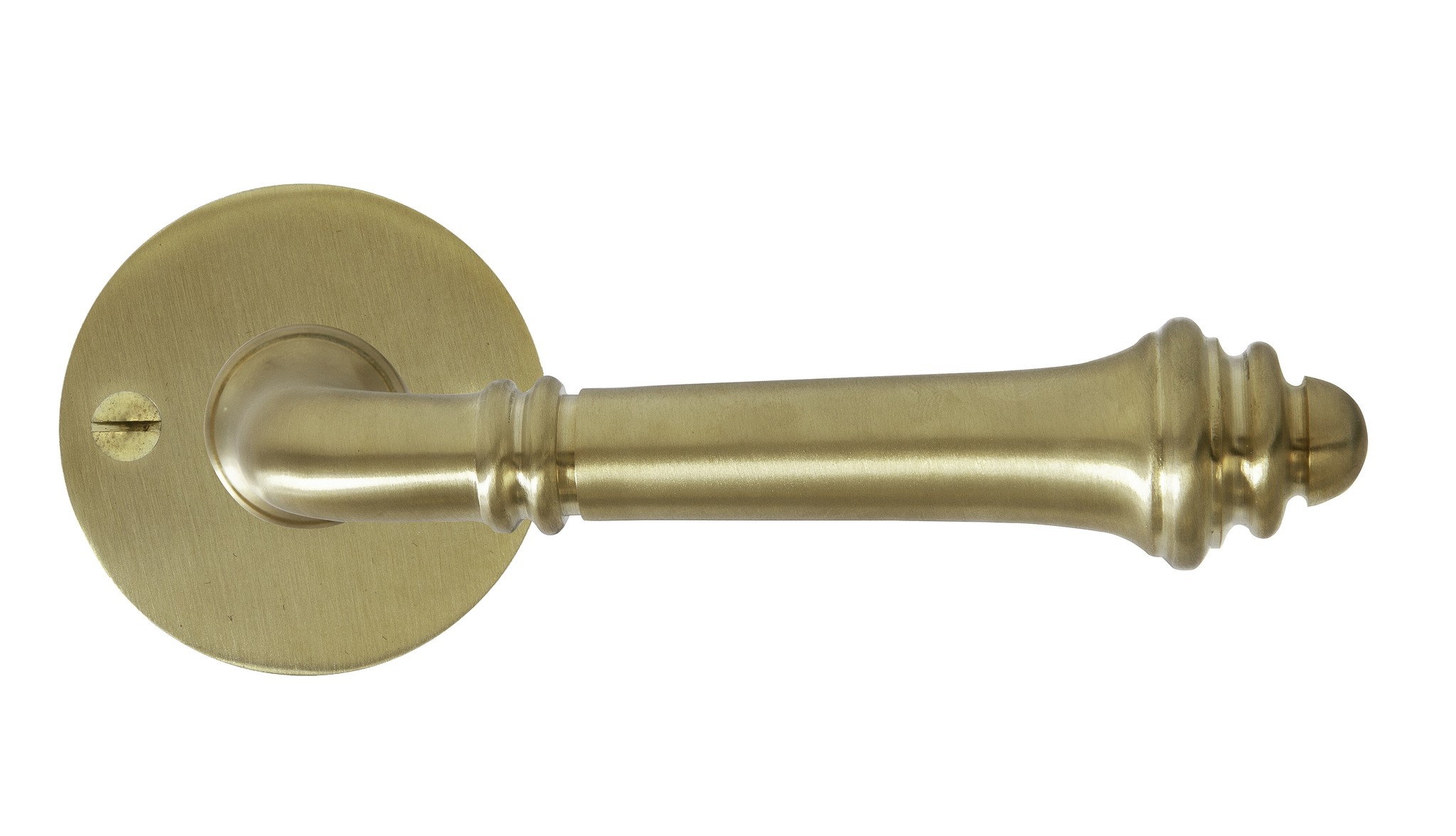 These door handles belong to the Country series, the models of which are based on the well-known CDF (Créations du Fer) collection by Dauby, but then made of brushed non-varnished brass.