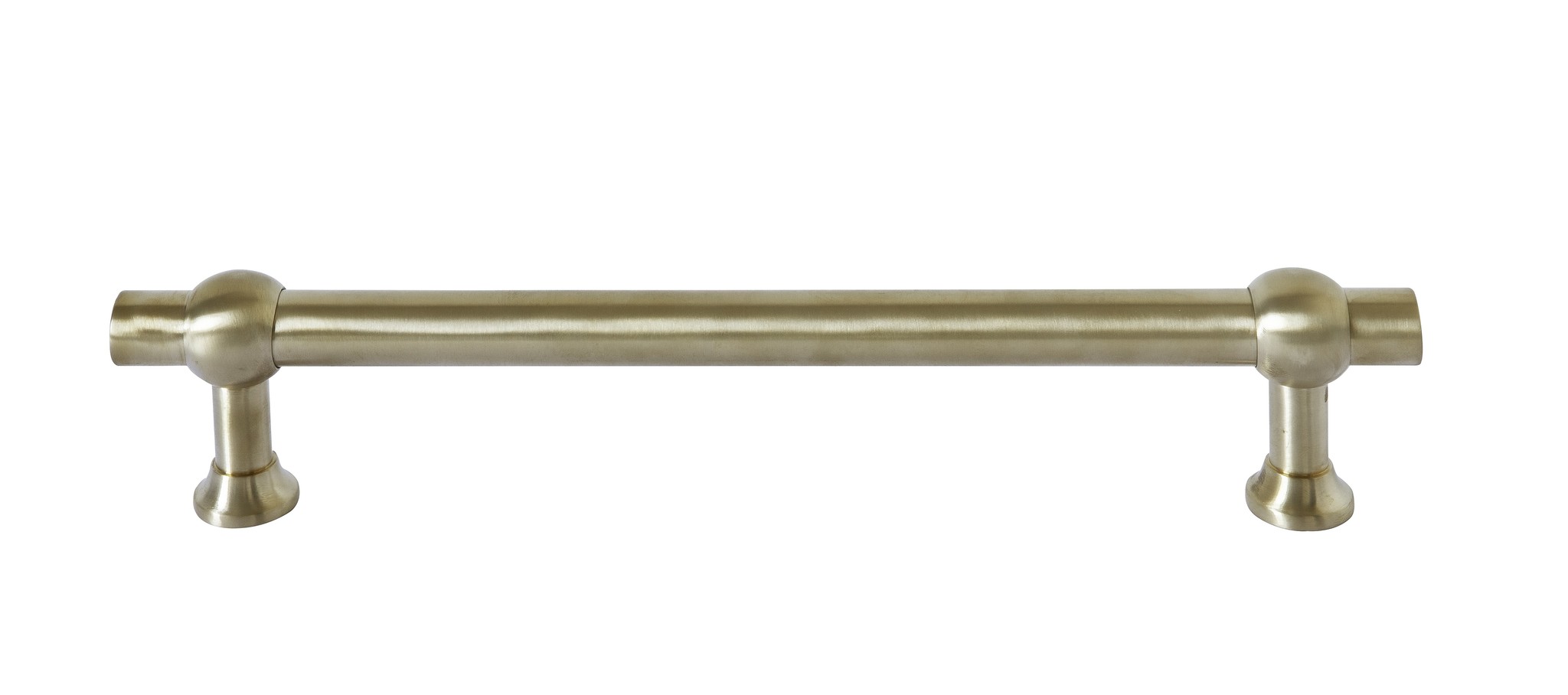 This single U-shaped exterior door handle is made of solid brass and has very nice button connections, which gives the handle a rustic appearance.