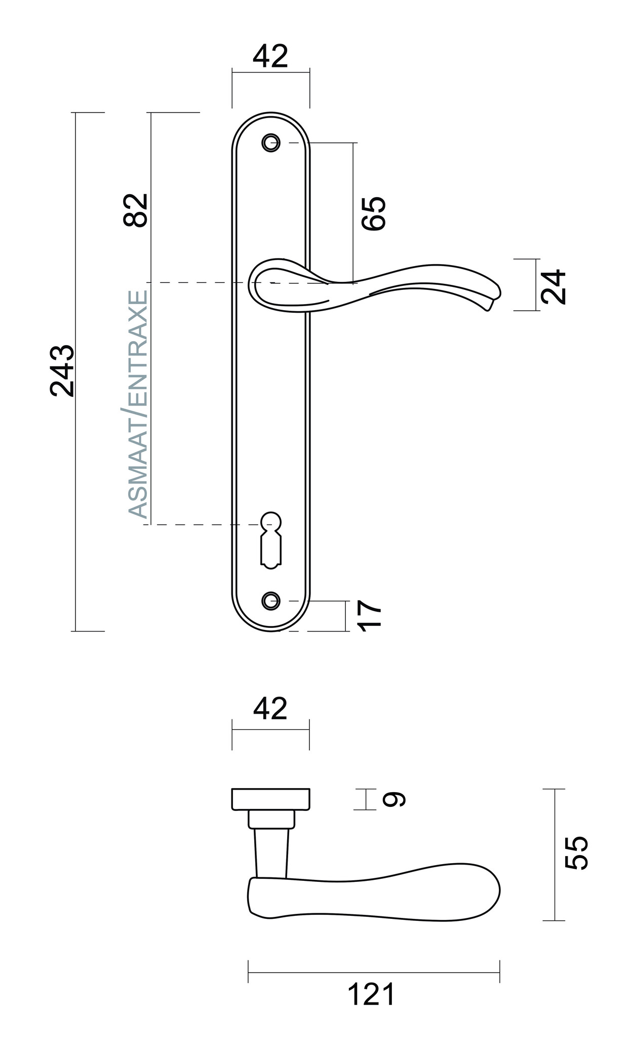 Description Classic Erica door handles on a titanium plate with a 10-year warranty.