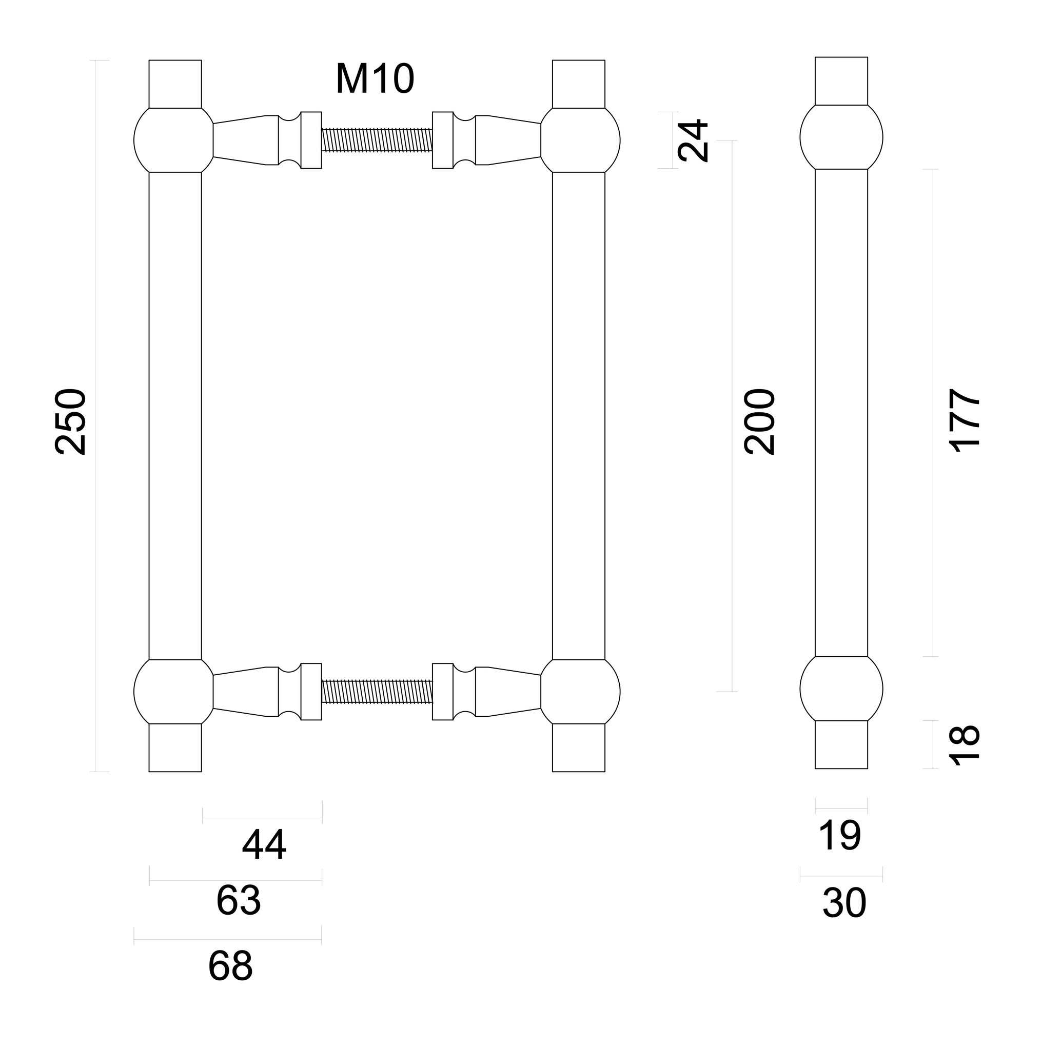 Door handle PETRA 200mm - Font - pair for door thickness >3CM