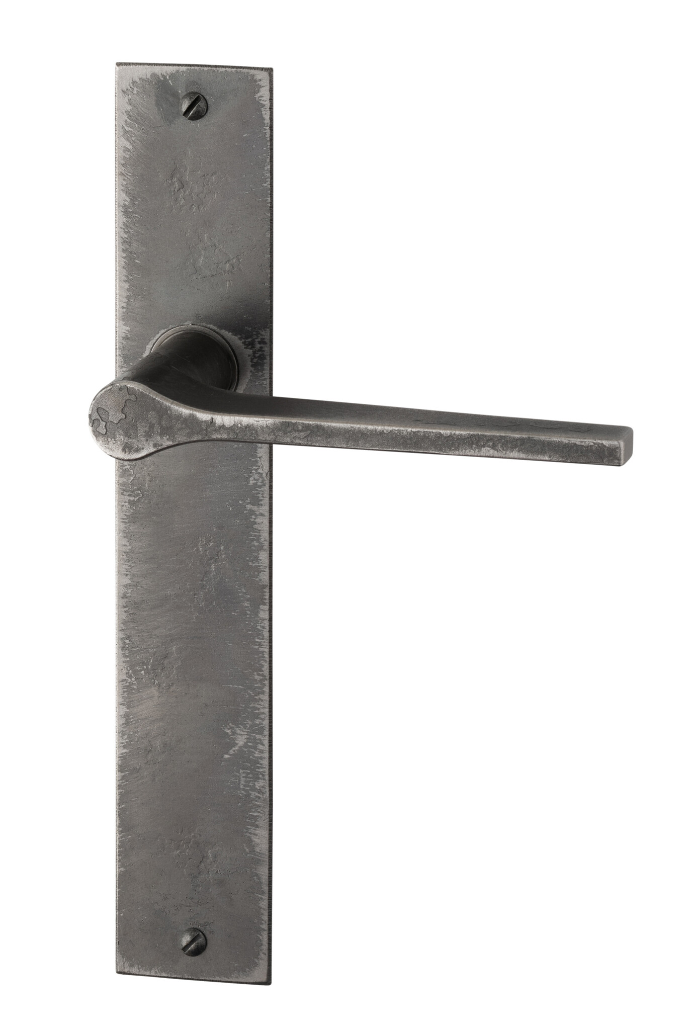 The geometric design, from round to flat on a sleek shield, makes these door handles not only timeless, but also very stylish. A subtle statement for those with an eye for detail and who love honest materials.