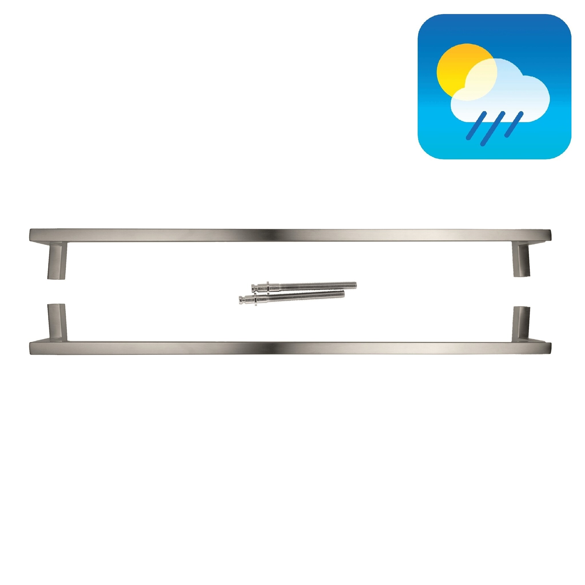 Pair of modern door handles made of stainless steel with an axle size of 800 mm for doors with a thickness of more than 3 CM. Very suitable for exterior doors!