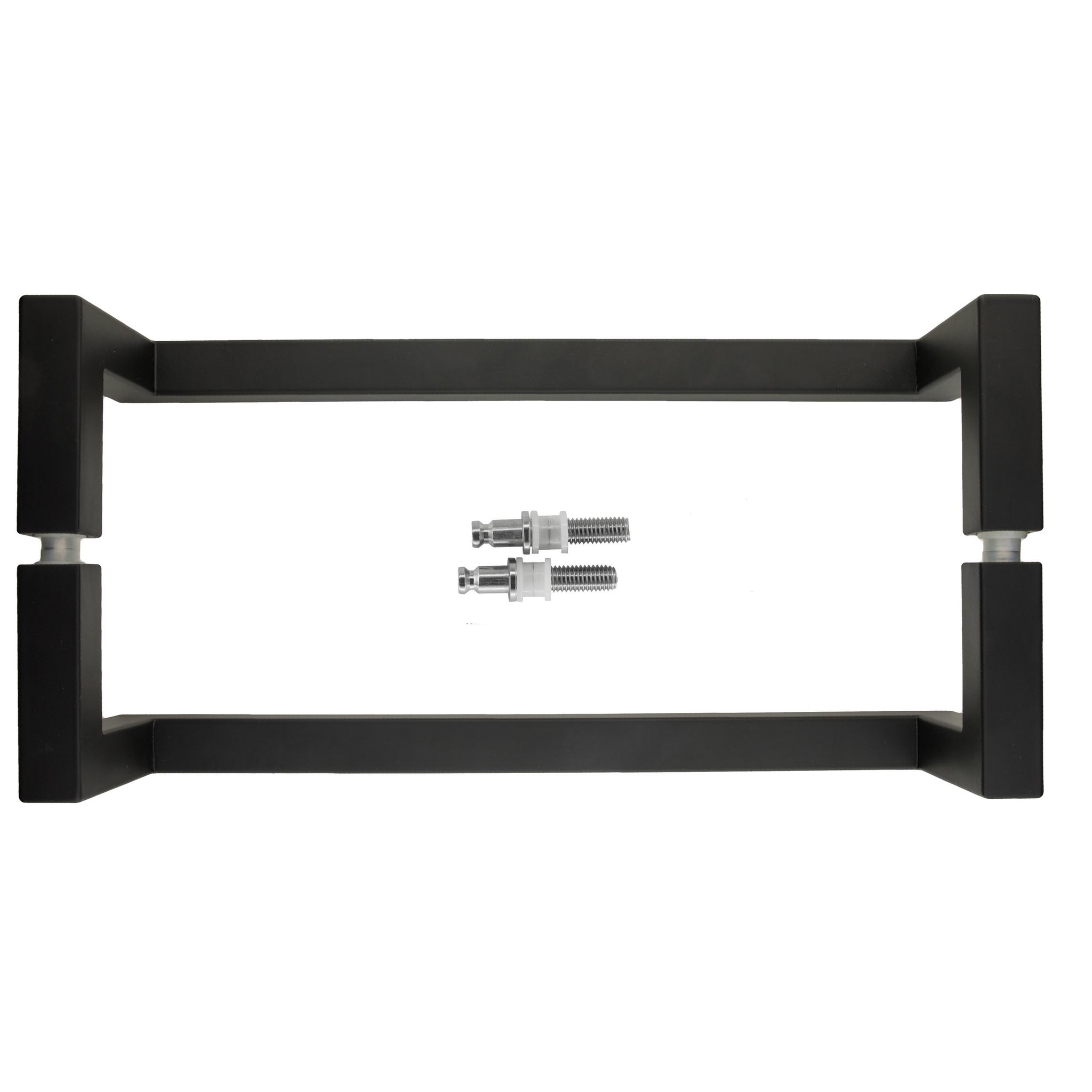 These black door handles are supplied as a pair including mounting materials for a glass door. To mount this handle, two holes of Ø 13 mm must be provided.