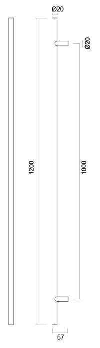 Standard stainless steel door handle in T-shape with a total length of 1200 mm.