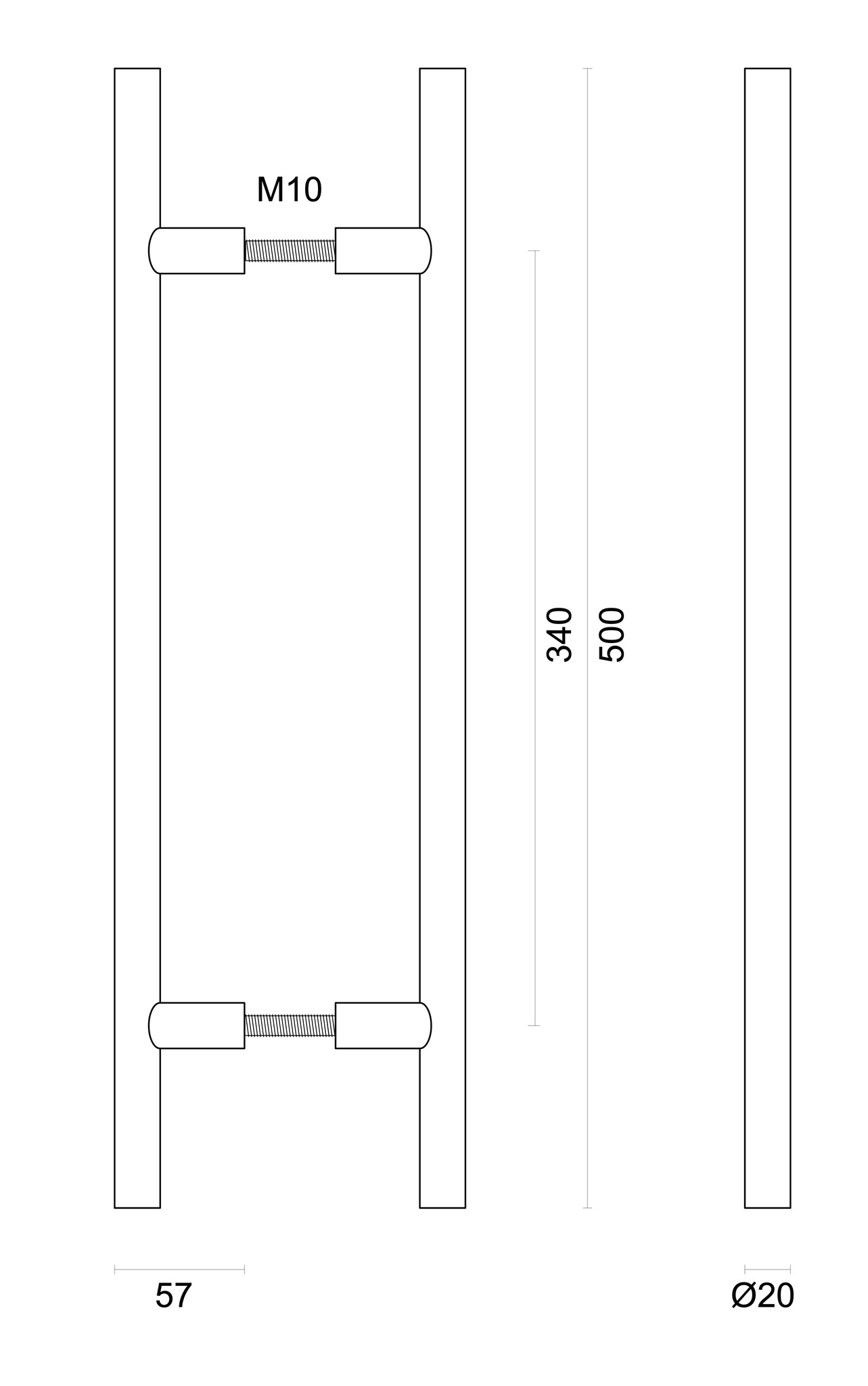 The round door handle U-model is supplied in pairs including the necessary mounting materials. The supplied bolts can be shortened depending on the thickness of your door.