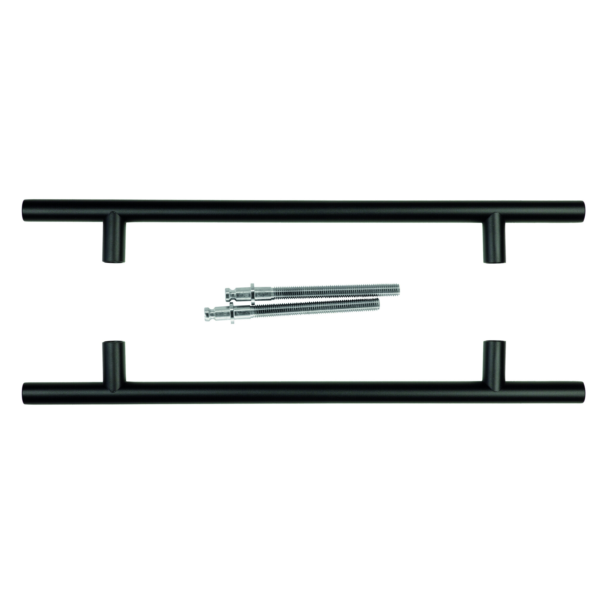 This door handle T-model with a stainless steel base is finished with a matte black coating. This door handle is only suitable for indoor use.