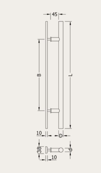On one side you have a regular black door handle (T-shape) with a diameter of 25mm.