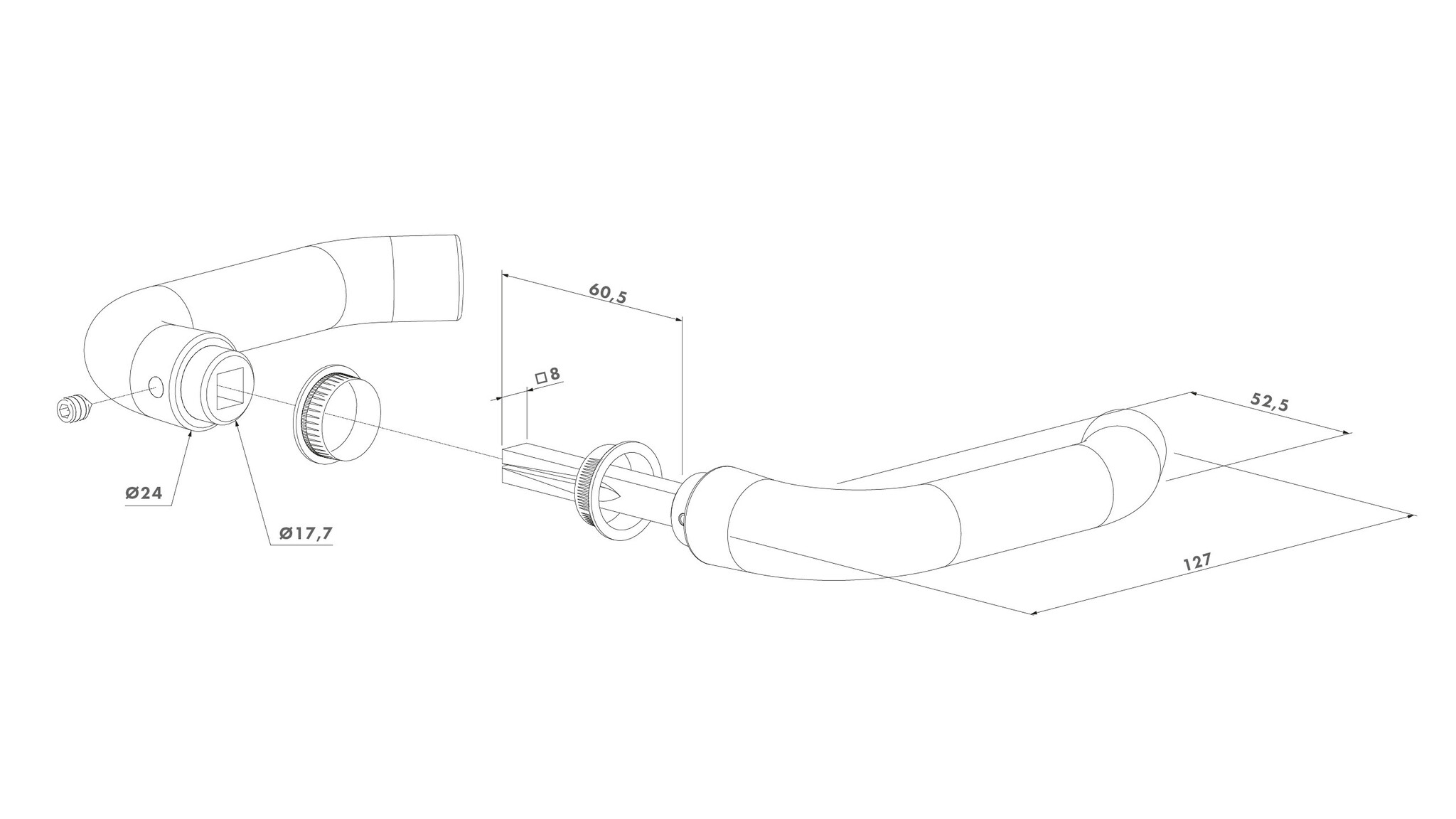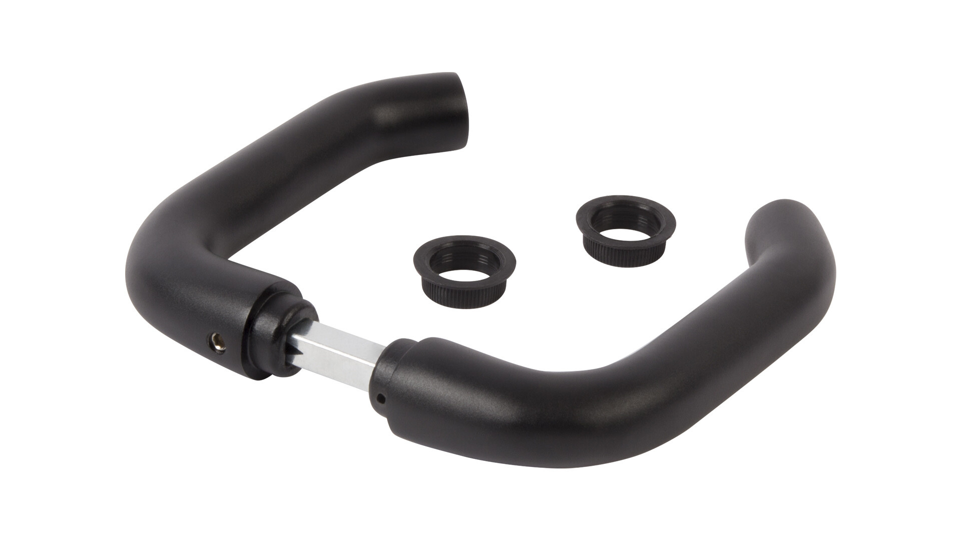 The handle pair in aluminum, with an 8 mm handle pin, fits perfectly with surface-mounted locks from Locinox. These door handles are made of black anodized aluminum with curved corners to prevent the hand from hitting the strike plate.