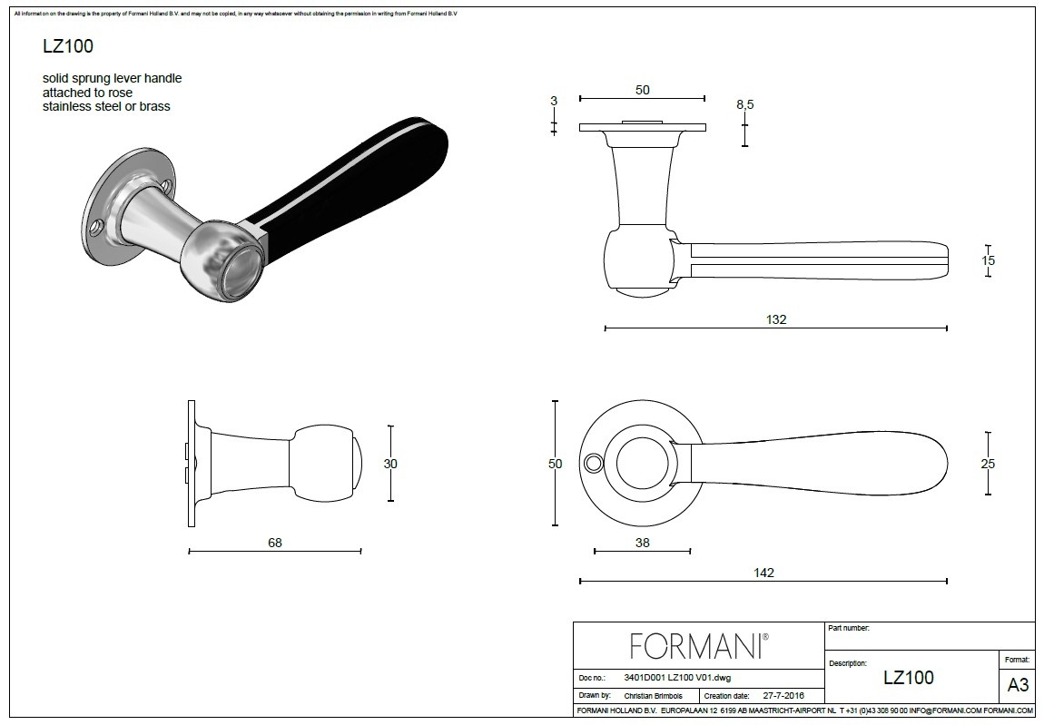 The Formani LZ100-G is a refined door handle from the BOSCO collection , which combines traditional craftsmanship and timeless elegance.