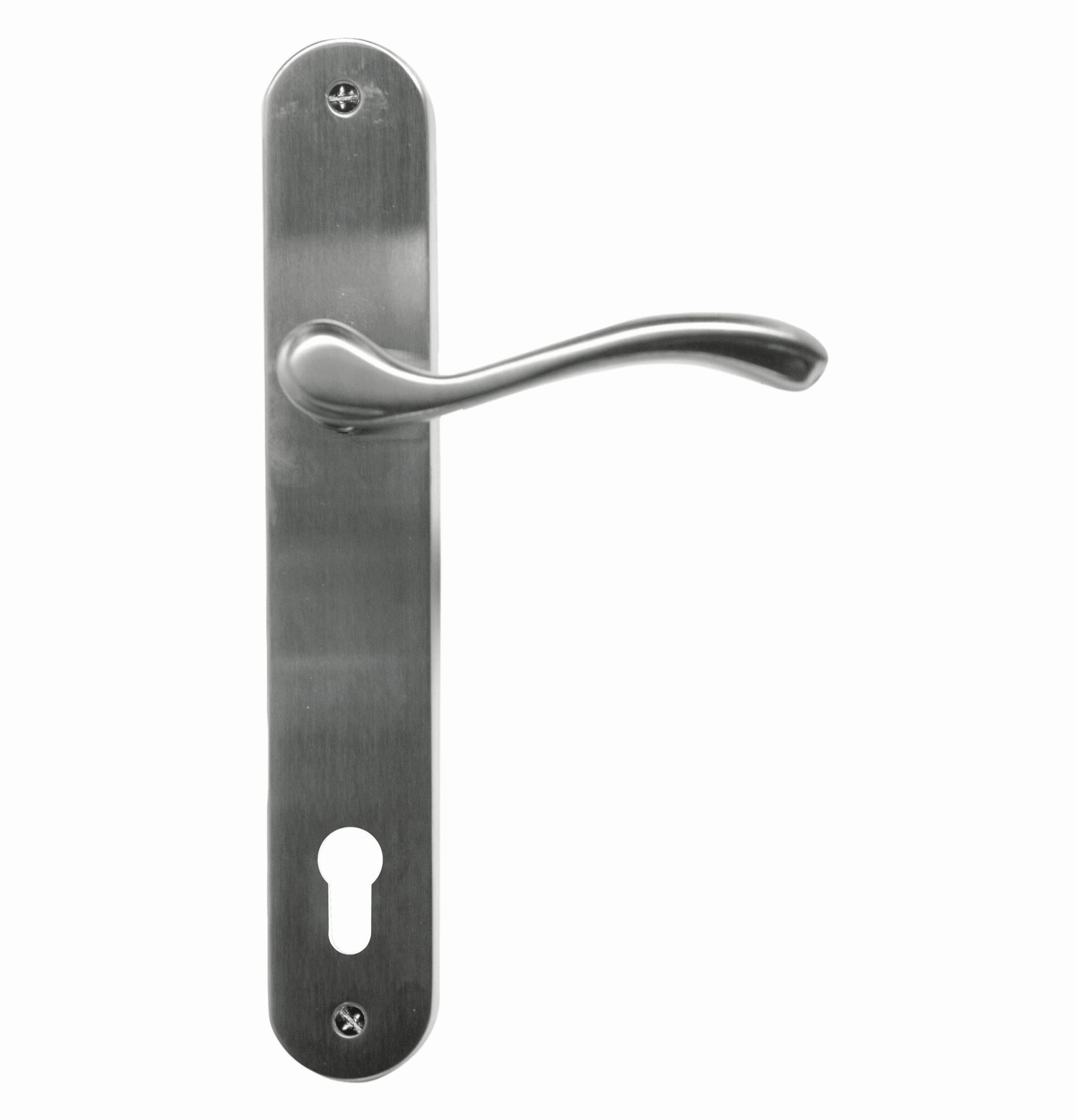 Description Door handles Erica stainless steel look on oval plate available in 4 variants and different axle sizes