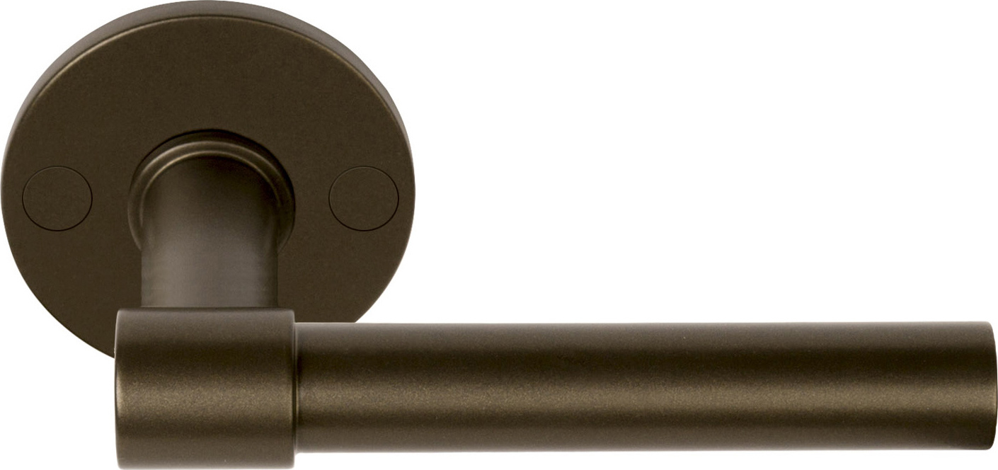 These bronze door handles are mounted on round sprung rosettes with a diameter of 50 mm and a thickness of only 5 mm . The door handles are also available in other versions.