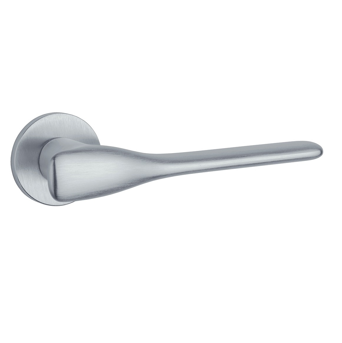 Description Solid door handles Orchide in Chrome Satiné on round rosettes Ø52x7 mm from Aprile