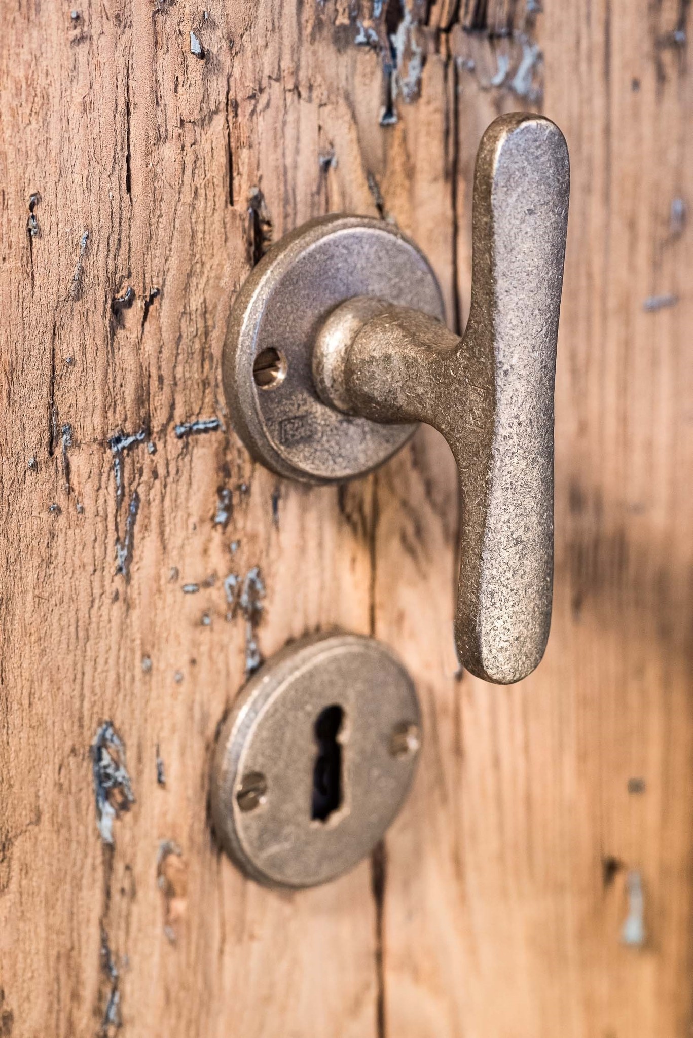 These raw bronze door handles from Dauby are made by hand from natural materials and are supplied in pairs without key plates. The mounting material is included including a pin (8x8mm).