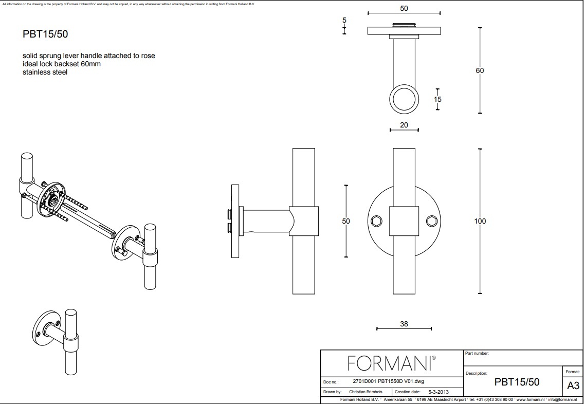 The PBT15/50 door handles are supplied per pair without key plates, including mounting materials and square pin.