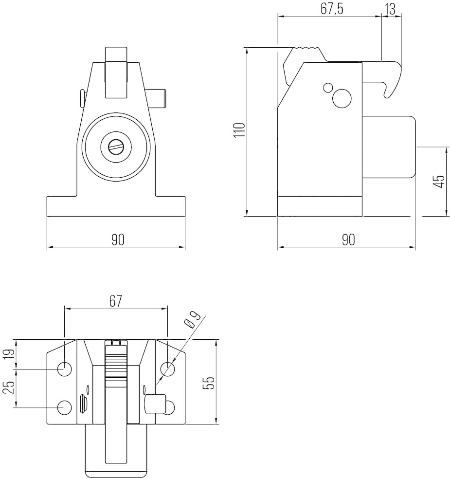 The fastener is made of Zamac, which is then finished with a white finish (RAL 9016). It features a spring-loaded bumper , a locking slide, and a safety catch.