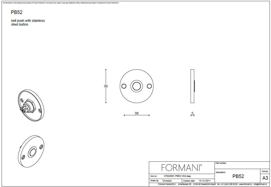 Formani doorbell Piet Boon ONE-PB52 round 50 mm - Matt black