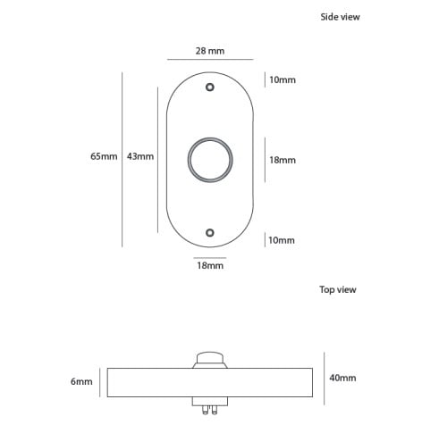 The doorbell, which stands on an oval rosette of 65x28 mm, is supplied per piece including mounting material. The mounting holes are already provided in the rosette and are at an center distance of 43 mm.