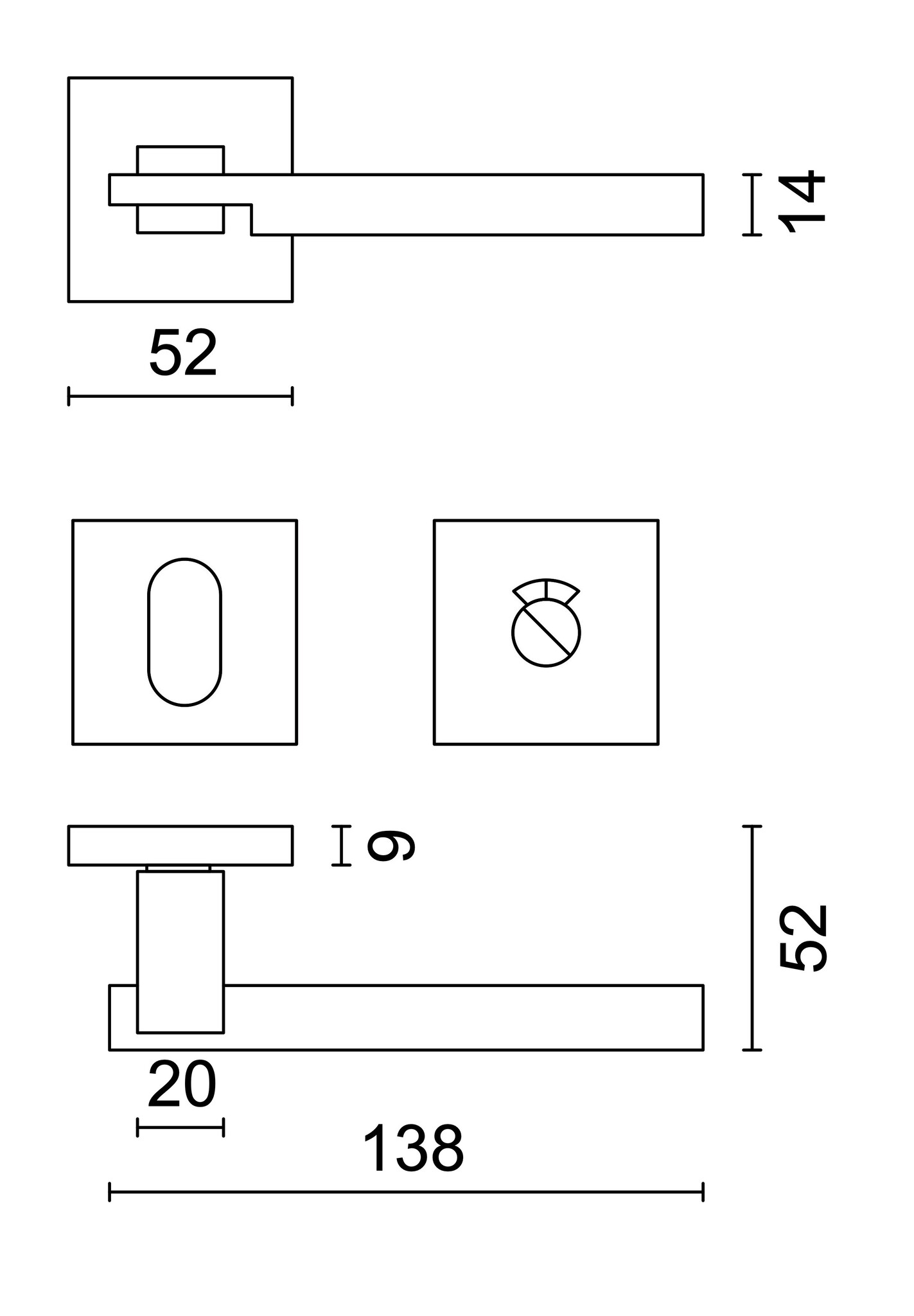 Solid stainless steel door handles "Square 2" available in 4 versions