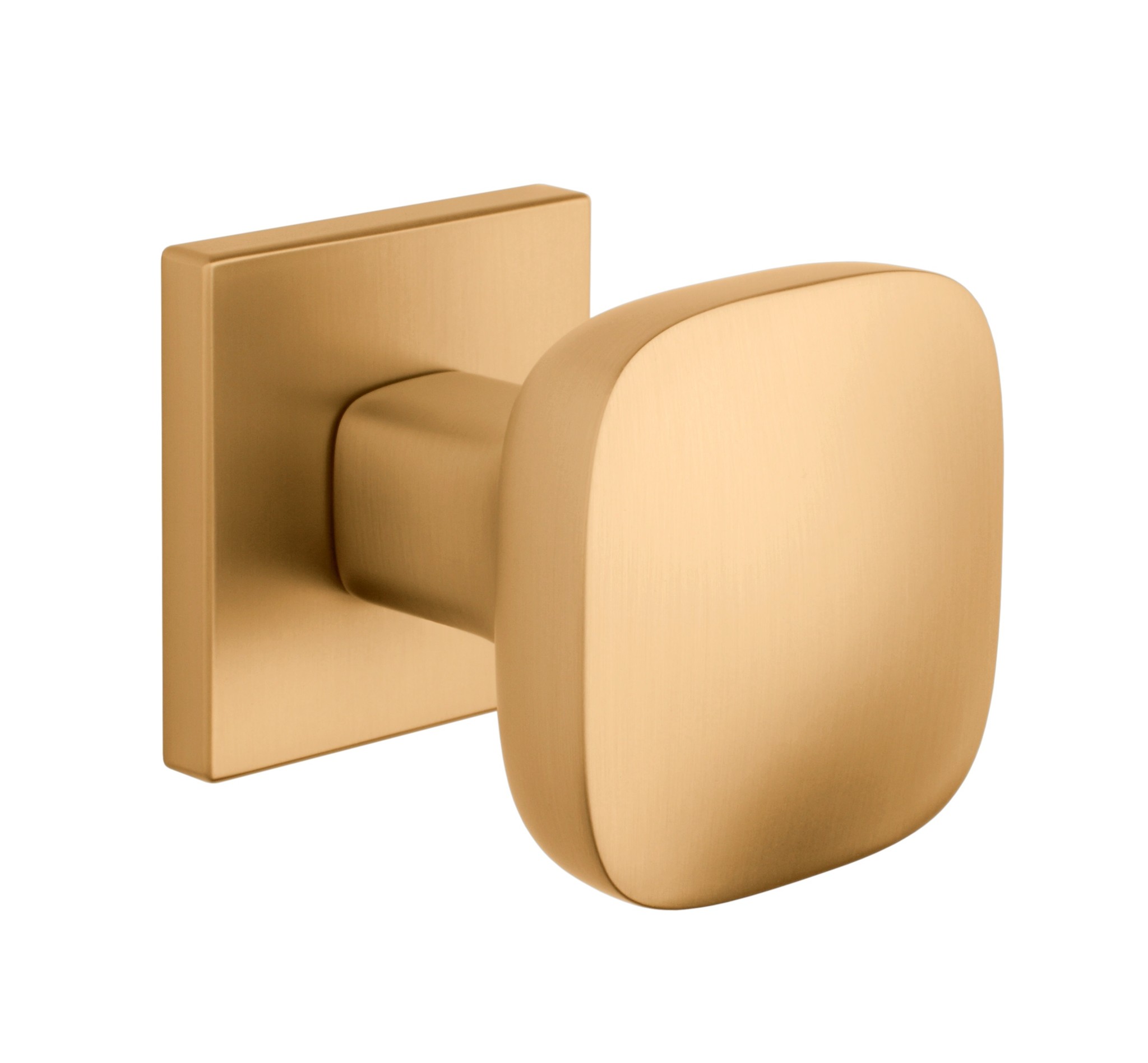 These solid square doorknobs in matt Gold have a base of solid zamac, after which they are finished with an anodized coating.