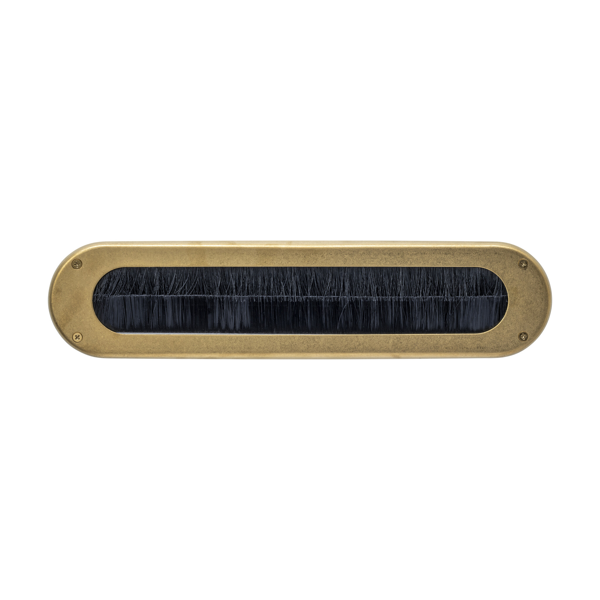 This oval draught excluder is made of high-quality stainless steel and has a tumbled finish, which provides a unique look. The brass-coloured PVD coating provides extra protection and a luxurious finish. Delivery includes all necessary mounting materials for easy installation.