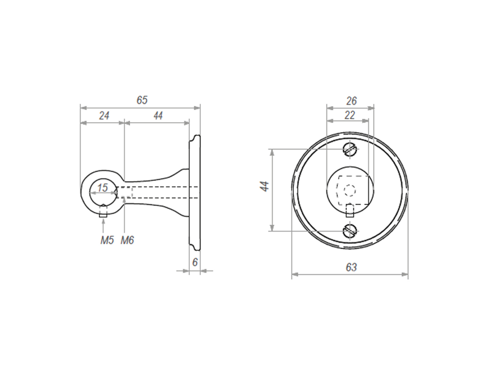 The end support has a round rosette of 63mm and comes 65mm from the edge.
