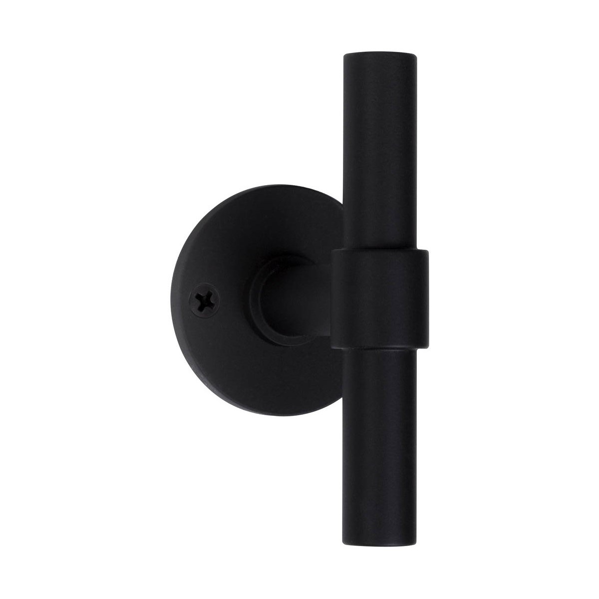 Fixed solid black stainless steel knob on a round rosette in T-shape from the ONE collection by Formani.