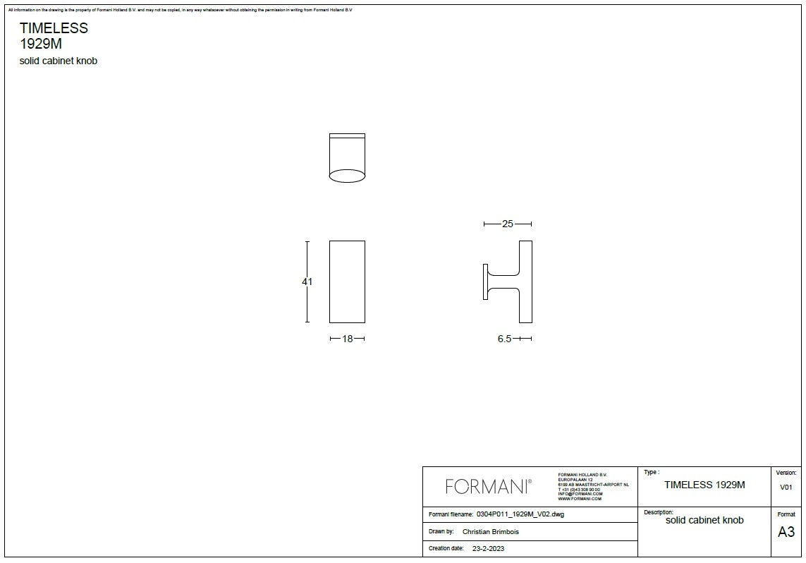 The Formani 1929M is a stylish furniture knob from the Timeless collection, in which simplicity and elegance come together.