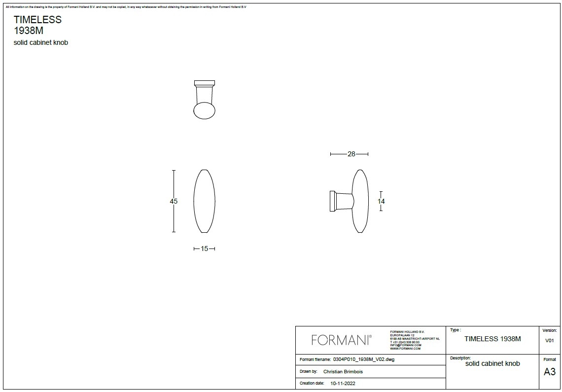 The Formani 1929M is a stylish furniture knob from the Timeless collection, in which simplicity and elegance come together.