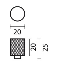 The round furniture knob with a matte black color has a diameter of 20 mm and a height of 25 mm.
