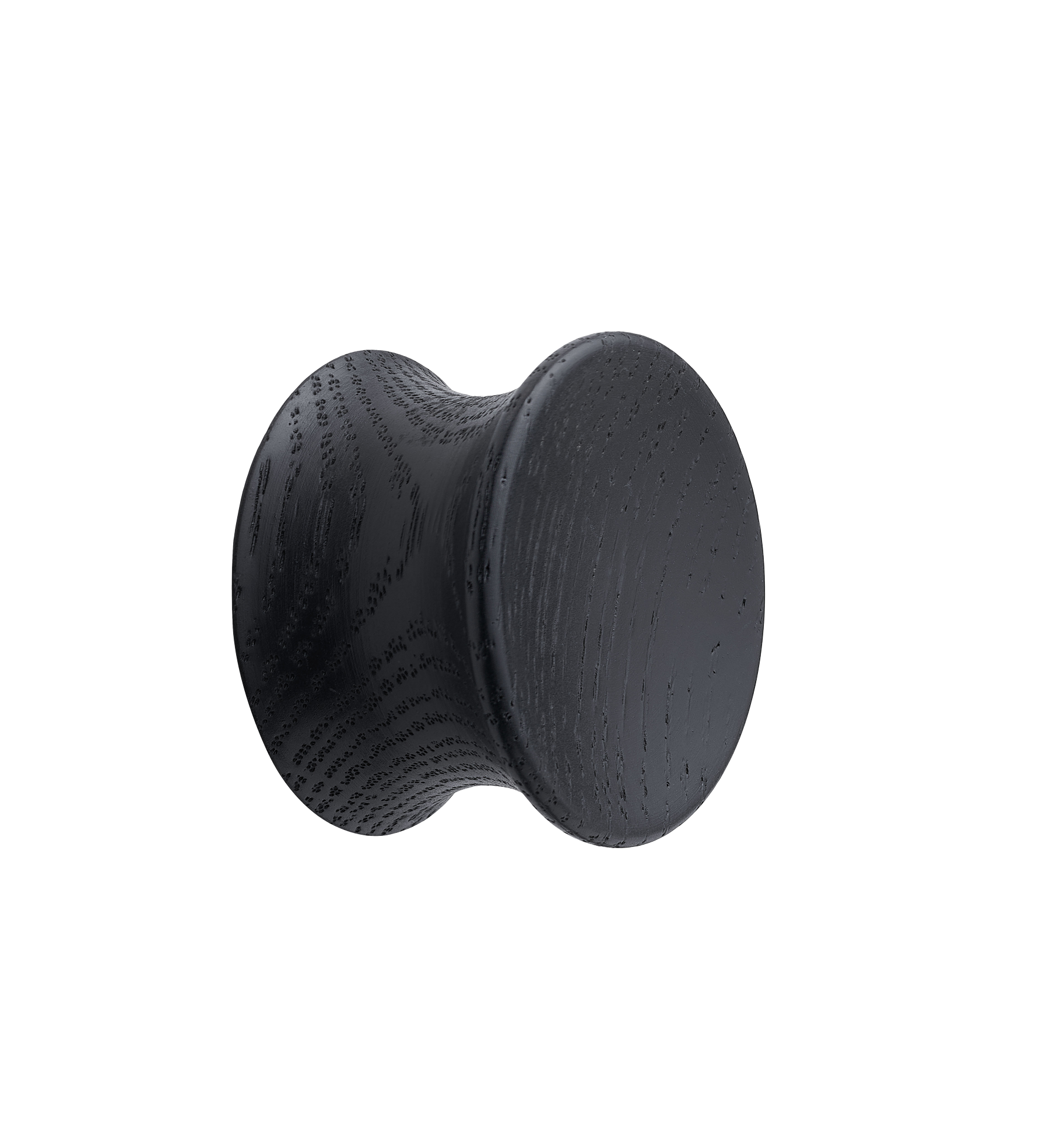 This black furniture knob is made of wood that is finished with a matt black lacquer.