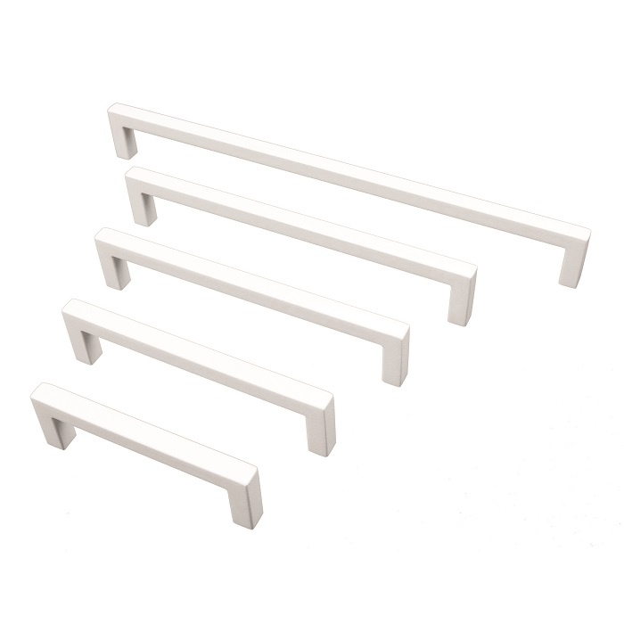 Furniture handle "CUBICA 10 mm" with tight right angles and finished with a matte white textured coating
