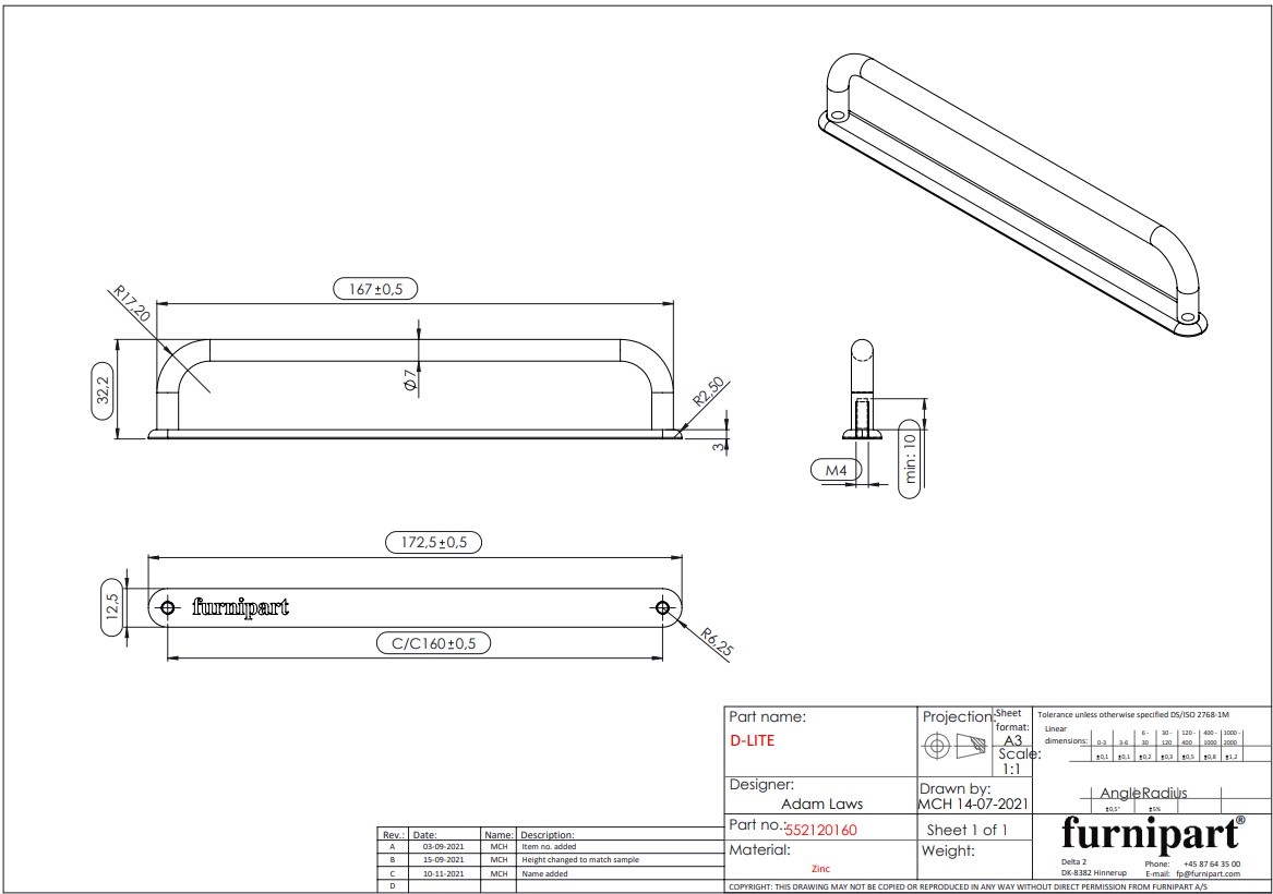 The D-LITE furniture handle is a modern classic inspired by the versatile and recognizable "D" handle. Refined and perfectly proportioned, the design fits into any environment and on any surface.
