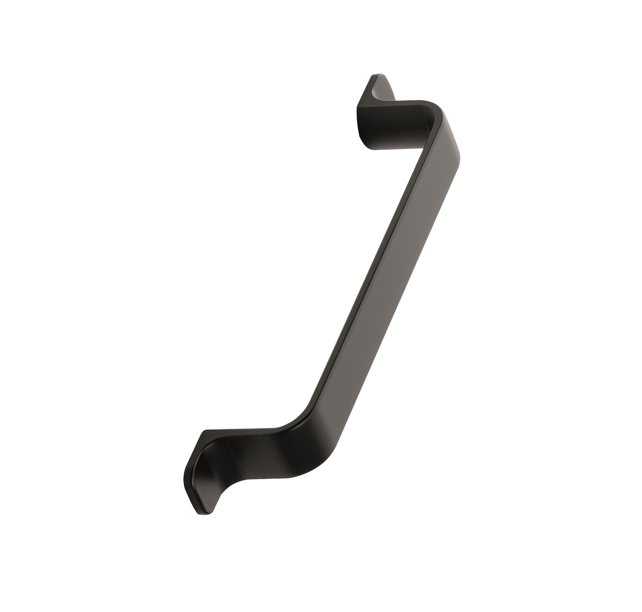 These black furniture handles have a base of zamak and are finished in matte black. The shape is simple with curved corners and exudes classic unity.