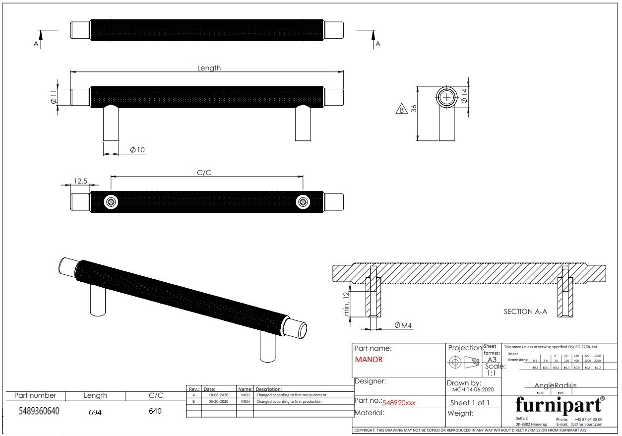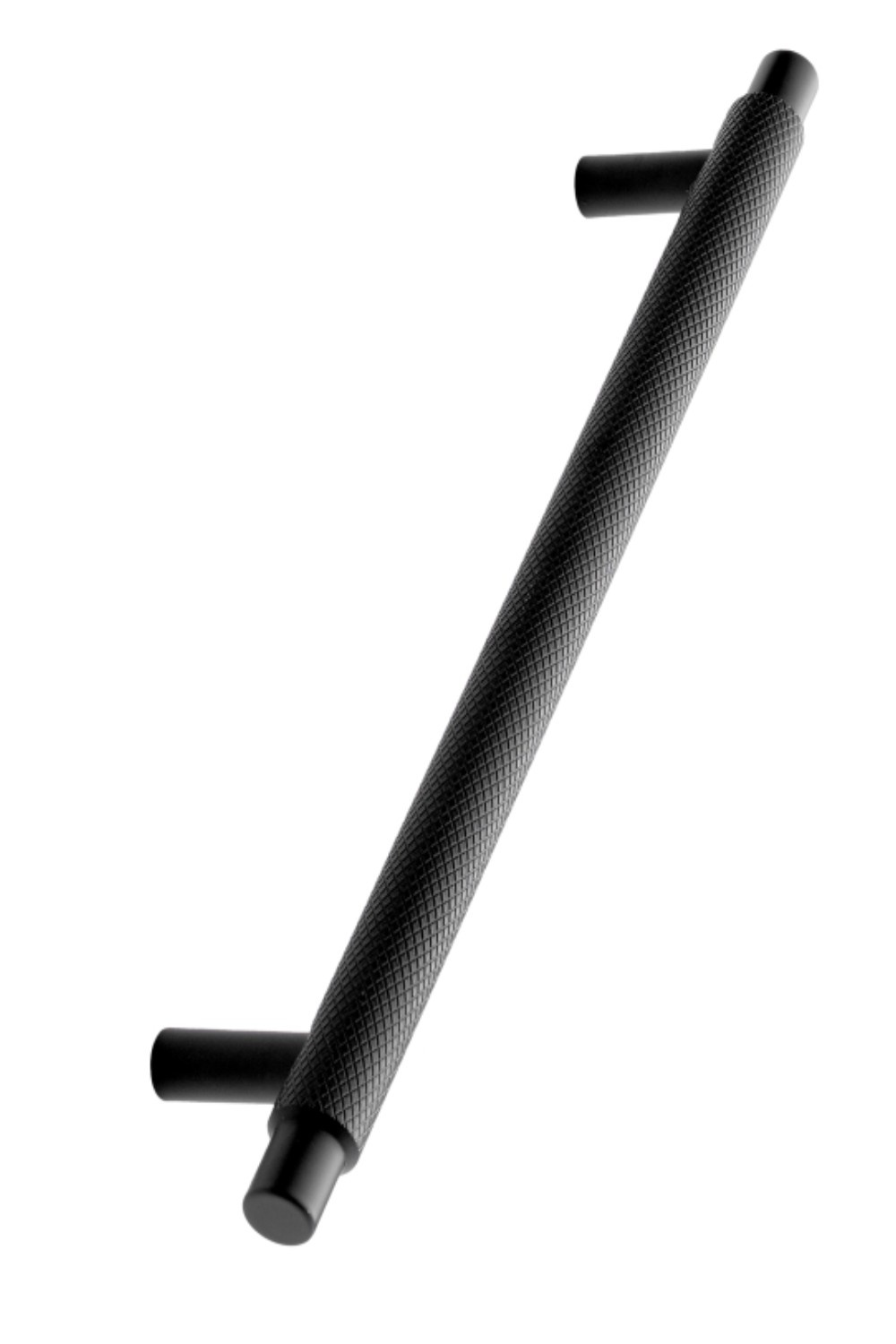 This longer furniture handle is made of aluminum and then provided with a black powder coating.