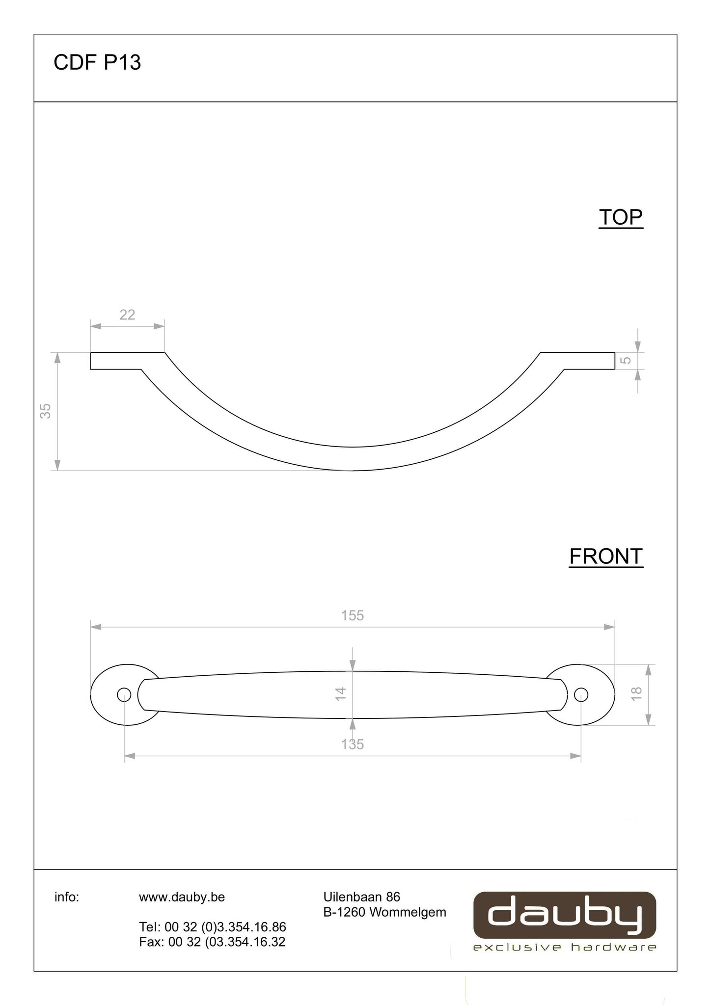 The length of these handles is 155mm and the distance between the 2 attachment points is 135mm.