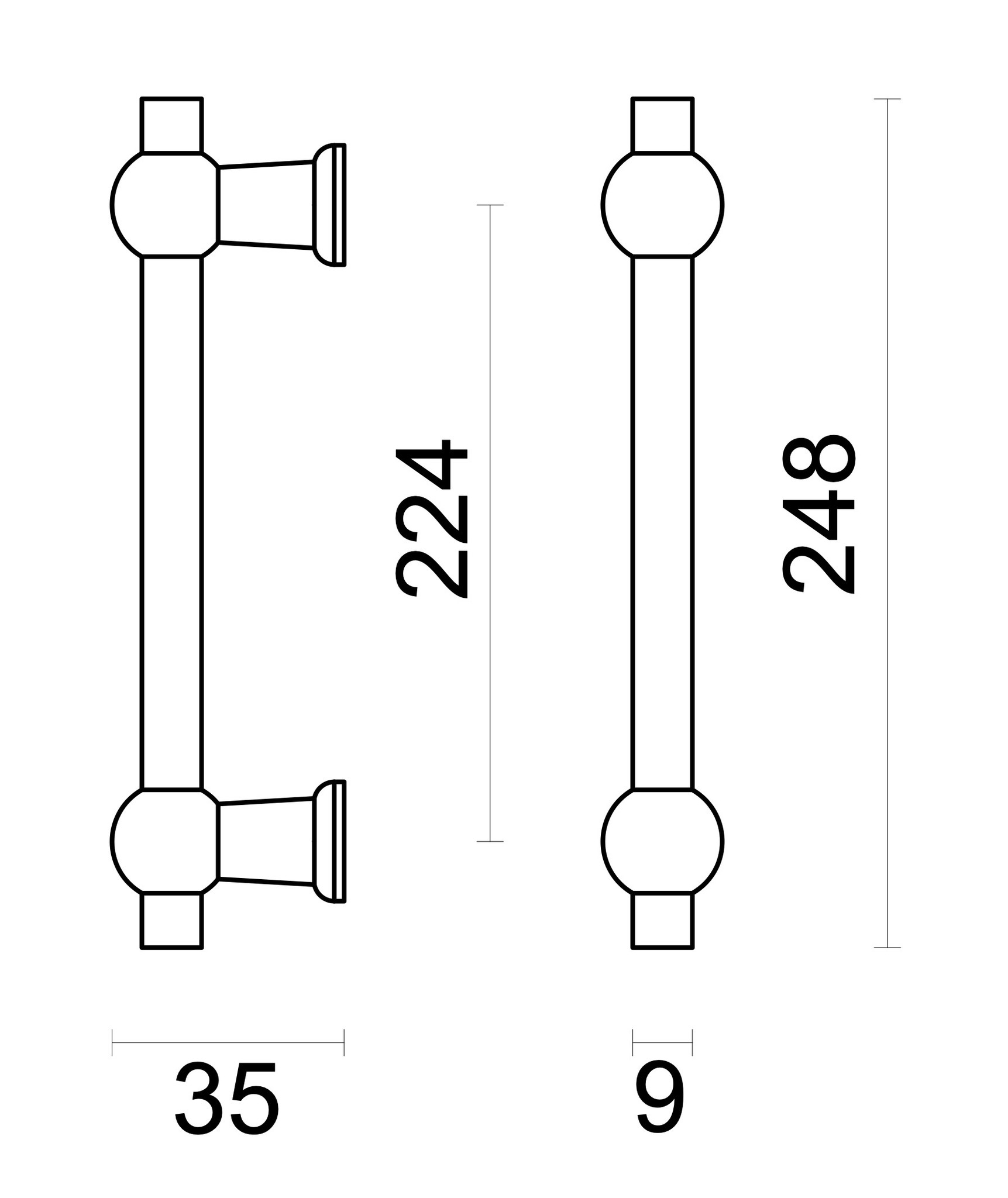 This fonte furniture handle made of brass with spherical corners has a thickness of Ø 9 mm and protrudes 35 mm. Font is a variation on black, the relief makes it look like they are damaged, which gives them a nice old-fashioned look.
