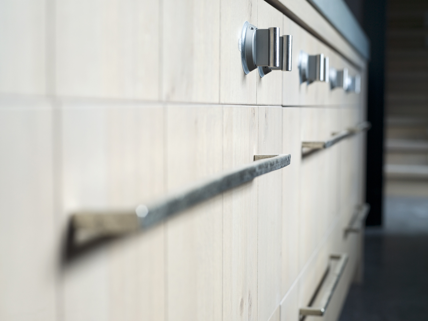 The furniture handles from the Pure® collection are a success in both new construction and renovated authentic buildings. They therefore provide a timeless and warm interior, free from all fashion sensibility. In combination with the buttons PQ and door handle PH1920 from Dauby, the furniture handles are beautiful.