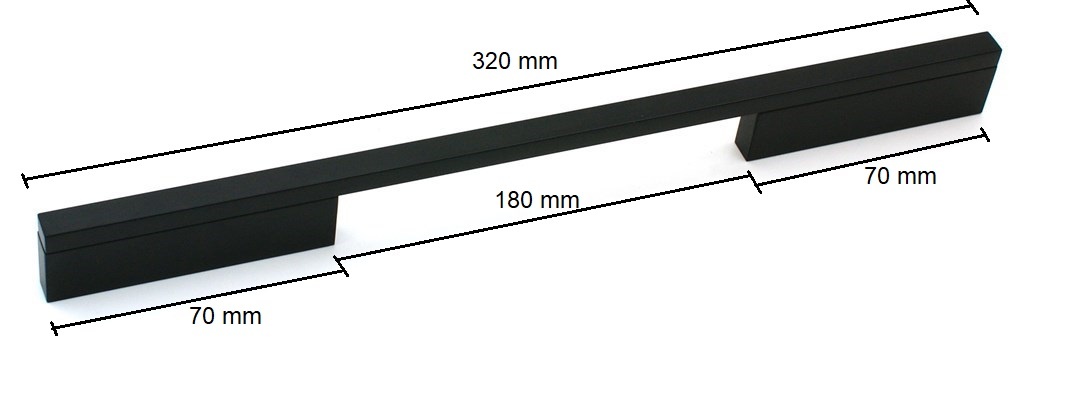 Modern black handle with a length of 320mm. This furniture handle has 4 attachment points.
