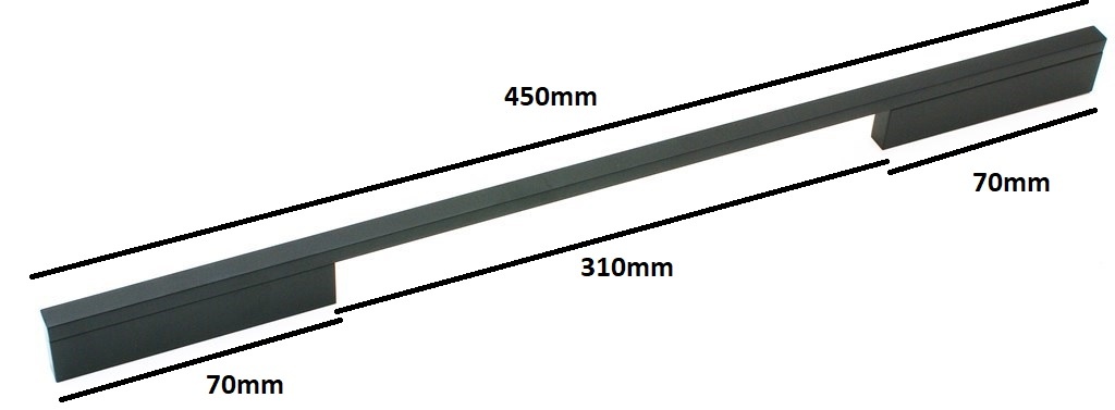 Modern black handle with a total length of 450mm. This furniture handle has 4 attachment points.
