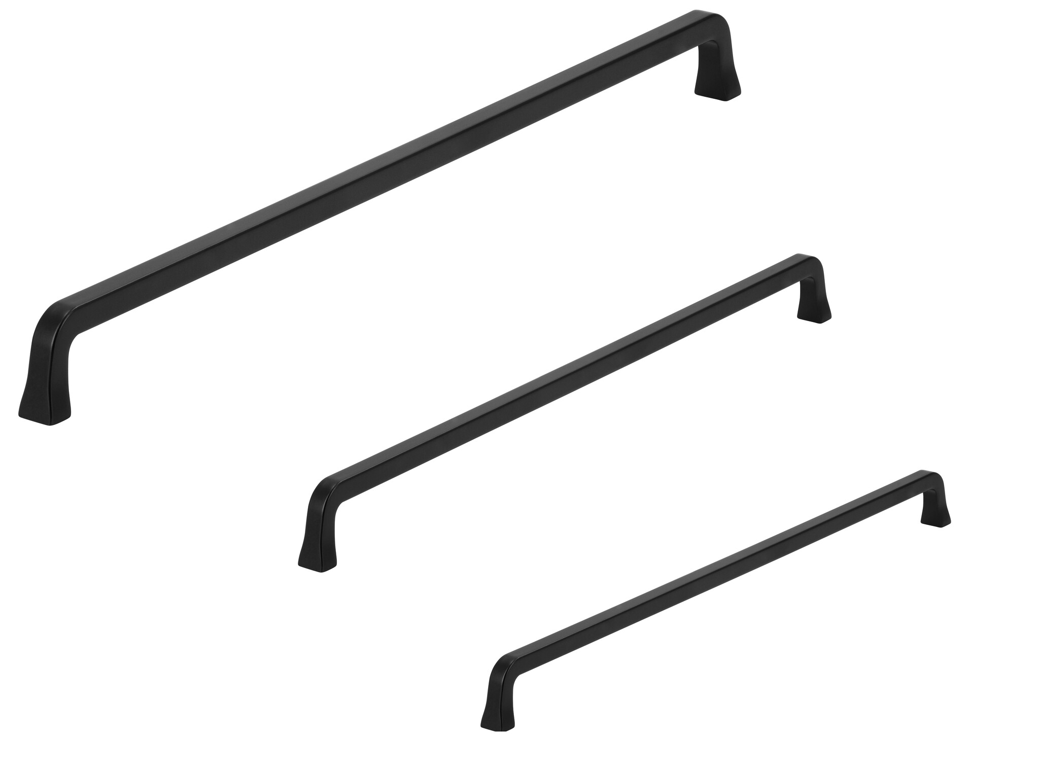 Beautiful furniture handle with an elegant look in matte black with slightly wider feet and rounded corners