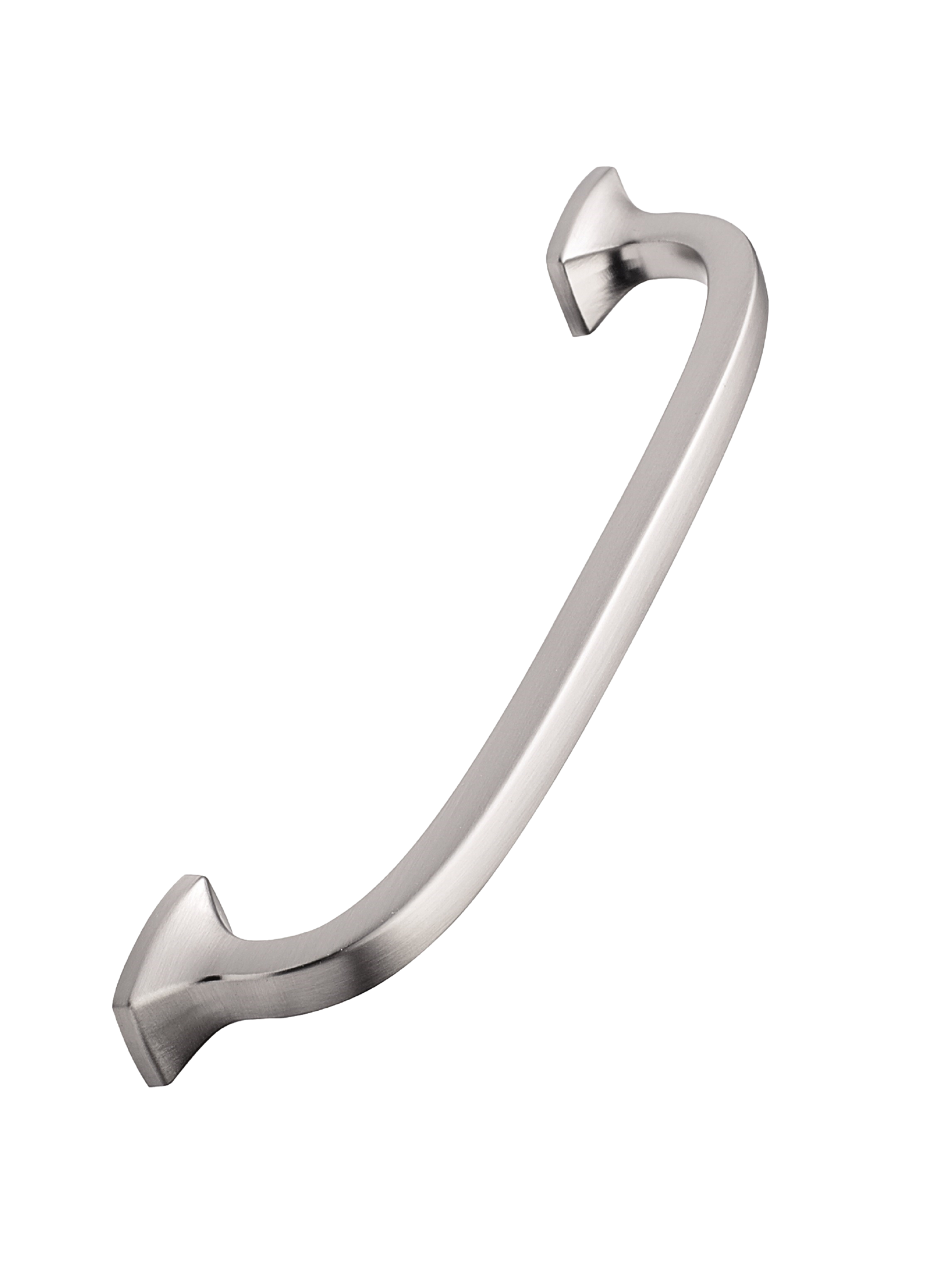 This furniture handle is made of zinc alloy and is provided with a stainless steel final coating.