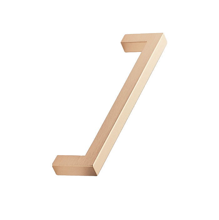 U-Shaped furniture handle SQUARE by Furnipart in brushed brass with a shaft size of 128 mm and total width of 138 mm square 10x10 mm