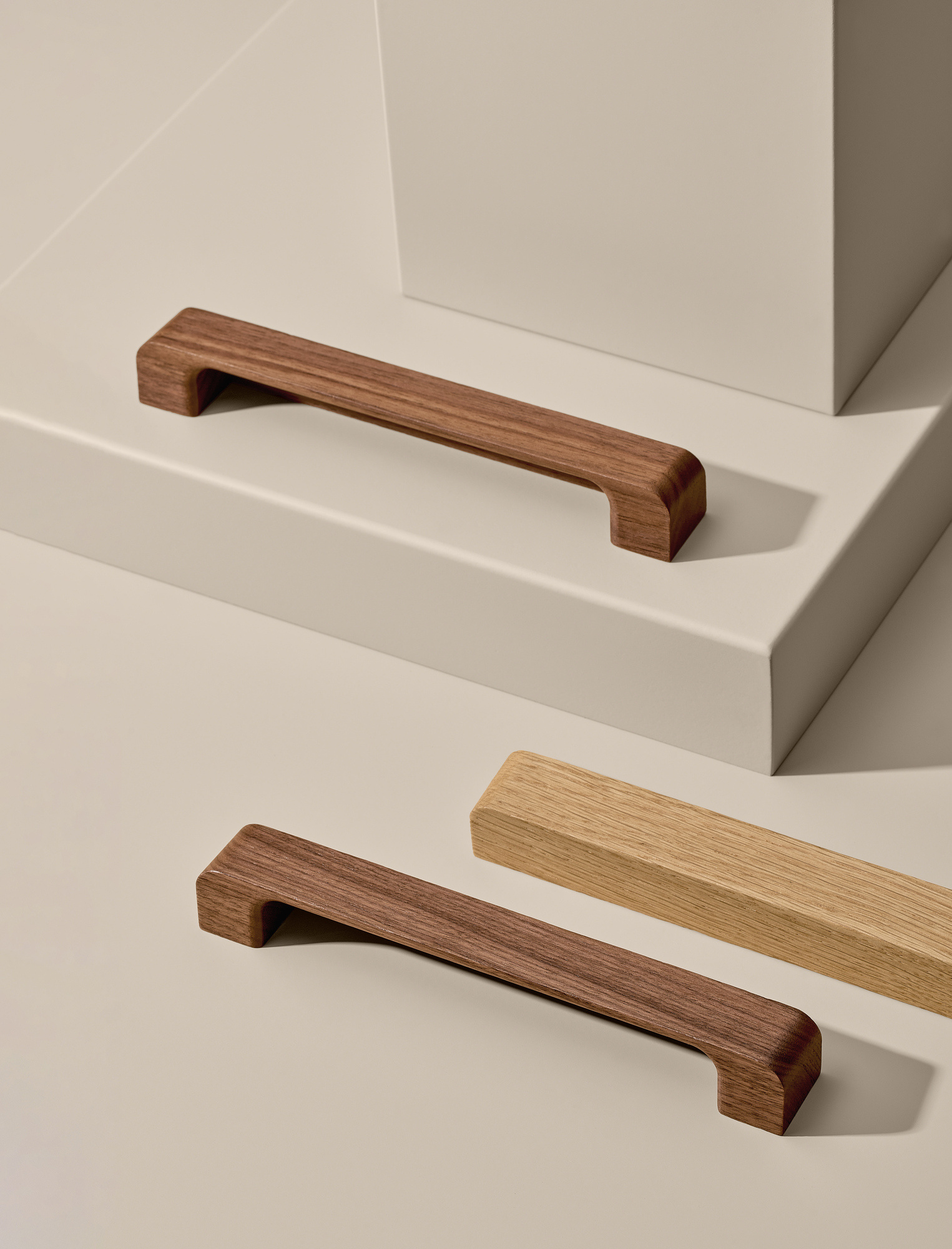 Beautiful sleek wooden furniture handles from Furnipart in different types of wood, sizes and colors