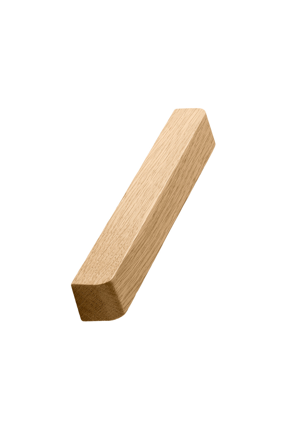 What started as a simple piece of wood with a square shape is now a work of art of a handle. Due to a small turn of 6° at the front and bottom, it seems as if the handle invites you to grab it. The cube shape has an exciting contrast between round and sharp edges, which are made even more noticeable by the large hole at the back.