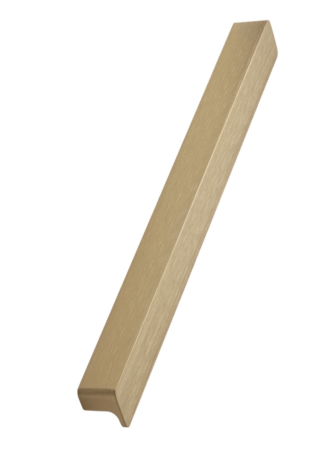 Furniture handles designed by VE2 for Furnipart made of aluminium and finished with a brass coating. Available in 2 lengths